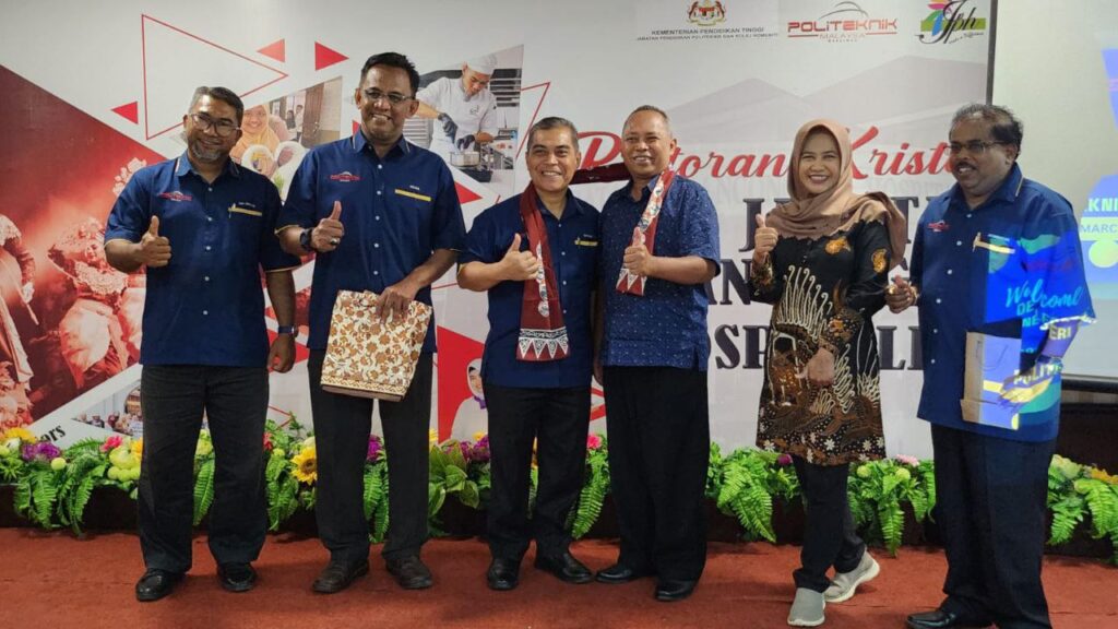 Malang, 6 Maret 2024 – Politeknik Negeri Malang (Polinema) memilih salah satu produk Batik Lintang, yakni syal bermotif tujuh topeng malangan, sebagai cinderamata dalam kunjungan ke Politeknik Merlimau Melaka (PMM) Malaysia pada Rabu, 6 Maret 2024 di Gedung Jabatan Pelancongan dan Hospitaliti, PMM Malaysia.